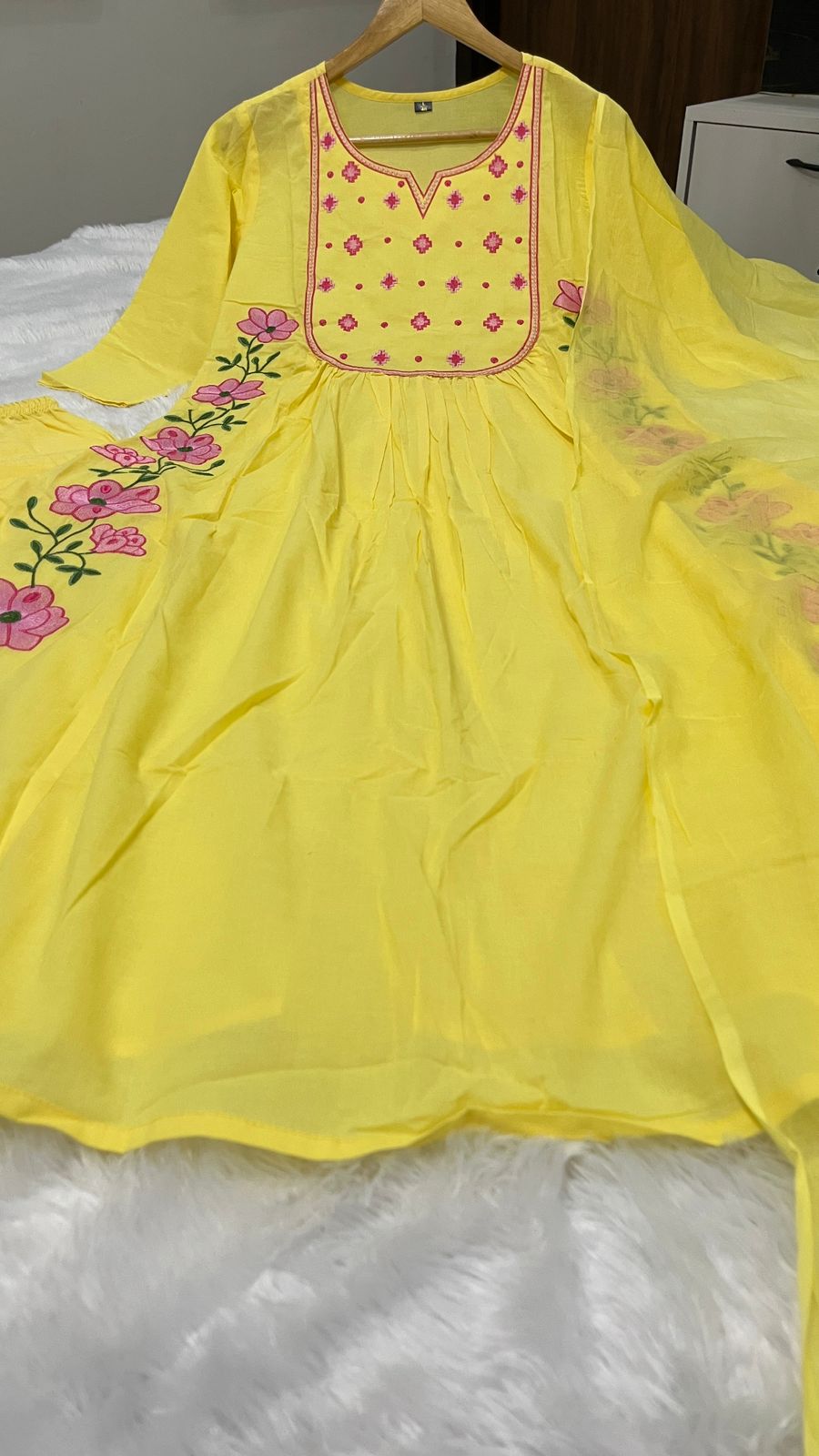 Experience elegance with this Beautiful Embroidery Work Lime Suit Set, crafted from pure cotton for comfort and breathability. The suit features intricate embroidery on the yoke, showcasing expert craftsmanship. Complete with matching pants and a full cotton dupatta, this set balances traditional artistry with everyday wearability. Ideal for those seeking a refined yet comfortable outfit.