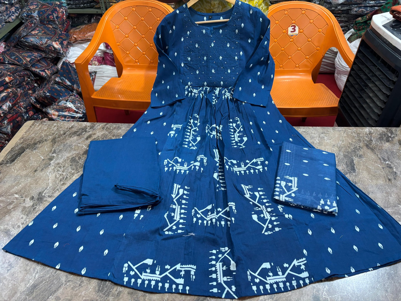 Elevate your ethnic wardrobe with this sophisticated Blue Anarkali Set. The ensemble features a gracefully flowing silhouette complemented by a lightweight mulmul dupatta that adds an element of refined elegance. Meticulously crafted for comfort and style, this versatile set transitions seamlessly from festive celebrations to formal gatherings, making it an essential addition to your collection.