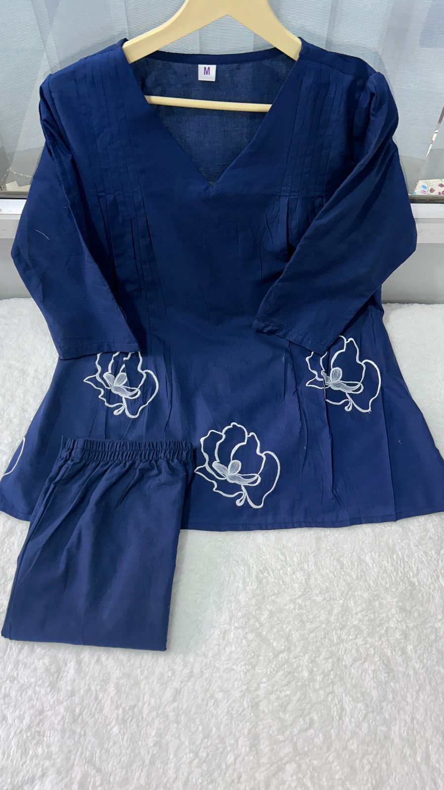 Elevate your wardrobe with this Dark Blue Embroidered Cotton Co-Ord Set, expertly crafted for comfort and style. Made from breathable cotton, it ensures all-day ease while the intricate embroidery adds a refined, artisanal touch. Perfect for both casual outings and semi-formal occasions, this set combines traditional craftsmanship with modern design for a versatile, sophisticated look.