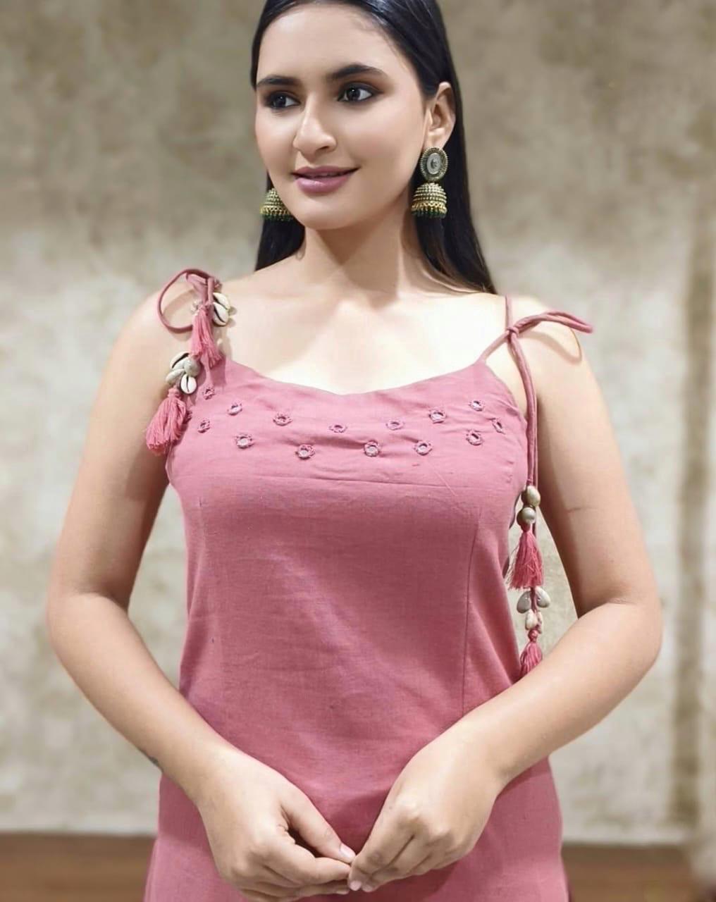 Elevate your ethnic wardrobe with this Pink Sleeveless Cotton Slub Kurta Set, featuring intricate mirror work that adds subtle sparkle. Crafted from breathable cotton slub fabric, it ensures comfort and durability, ideal for warm weather. The sleeveless design offers a modern silhouette while maintaining traditional elegance, making it perfect for festive occasions or casual gatherings. This kurta set combines style and comfort expertly, reflecting refined craftsmanship and attention to detail.