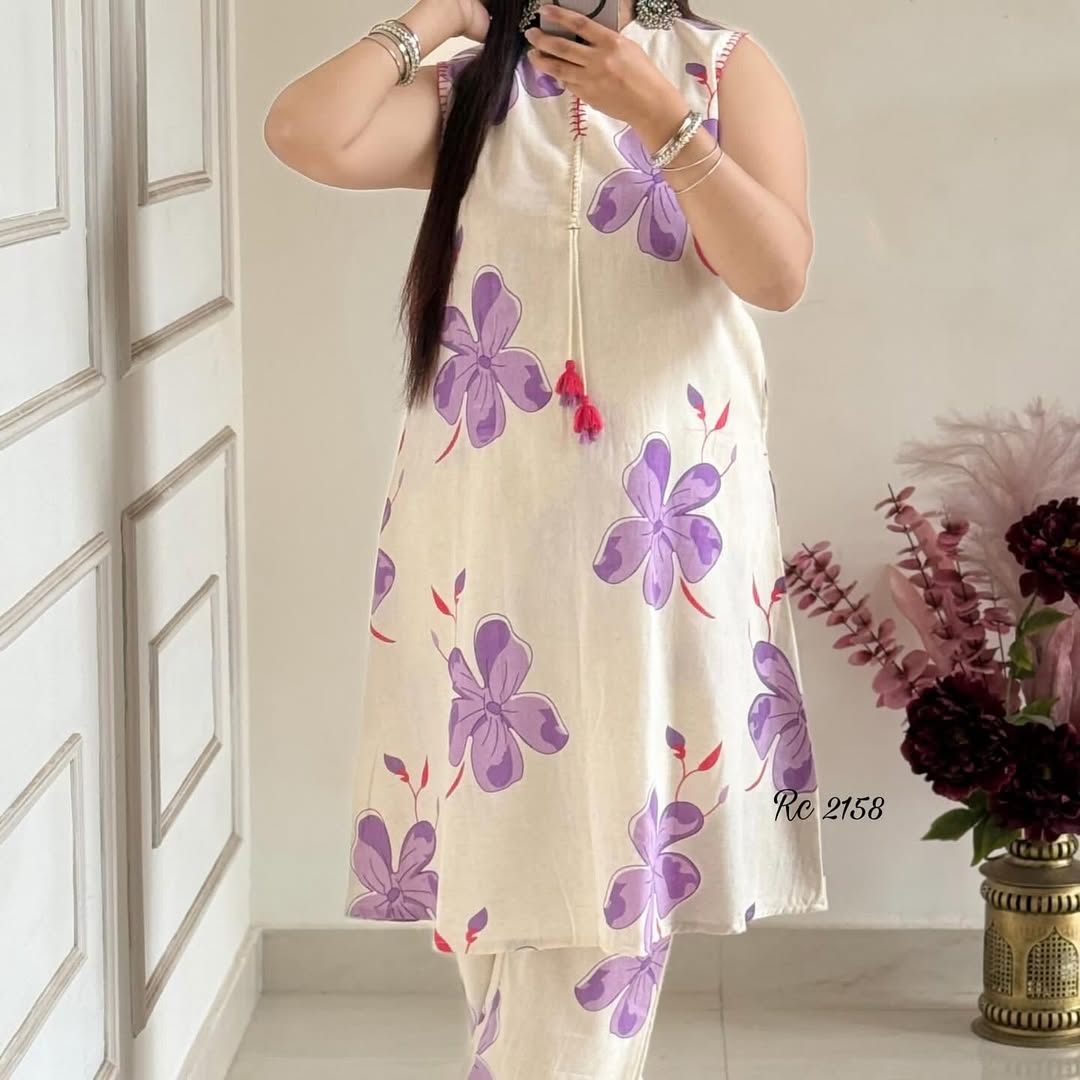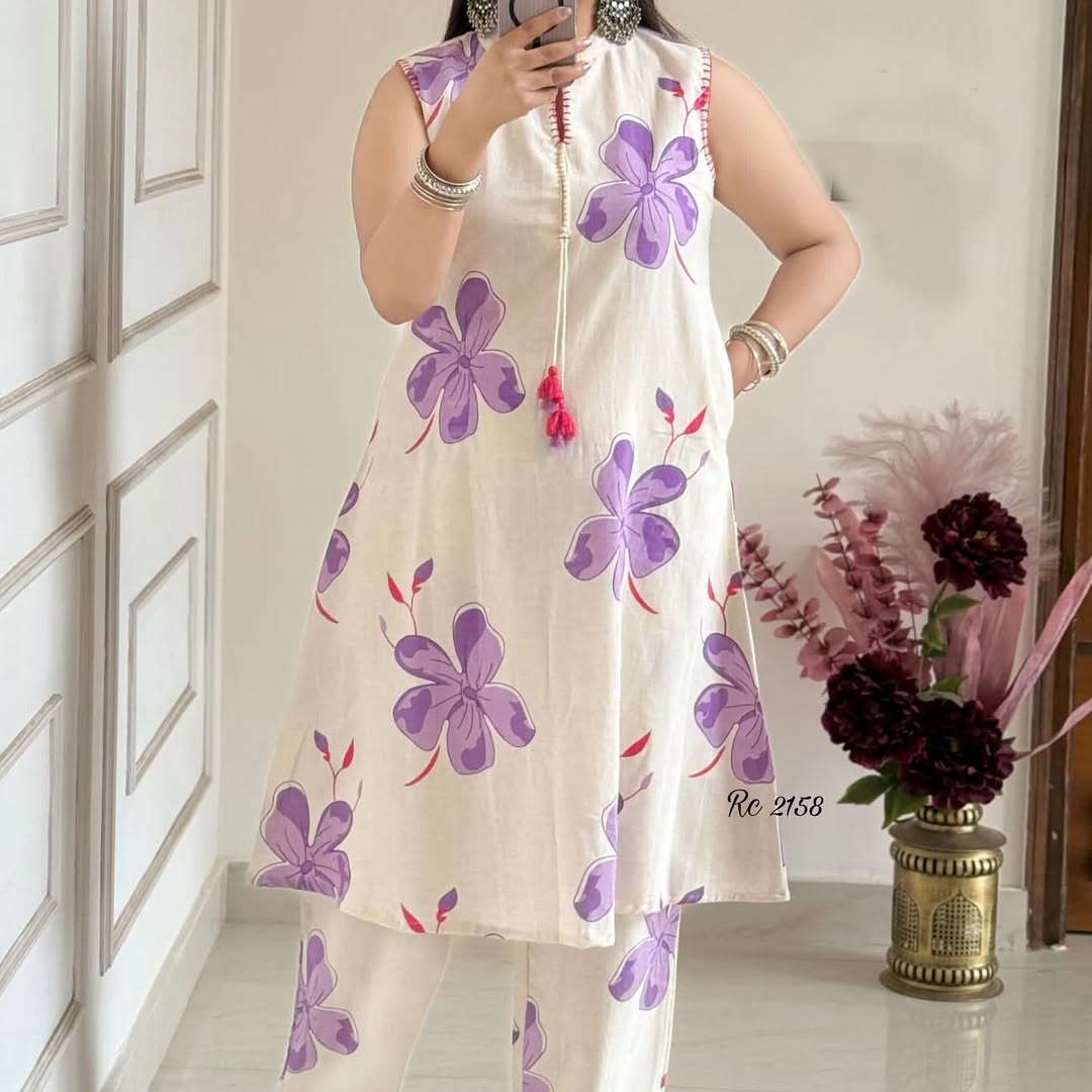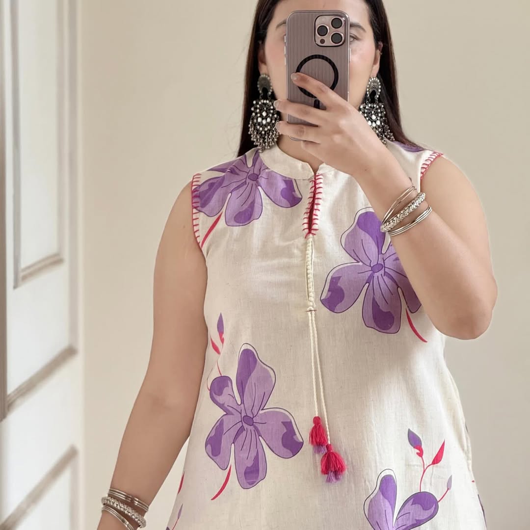 Elevate your ethnic wardrobe with this sophisticated Purple Floral Sleeveless Kurta Set. Featuring intricate floral patterns on a rich purple backdrop, this sleeveless design offers both comfort and elegance. Meticulously crafted with premium fabrics, it provides the perfect balance of traditional aesthetics and contemporary styling, making it an ideal choice for festive occasions and formal gatherings.